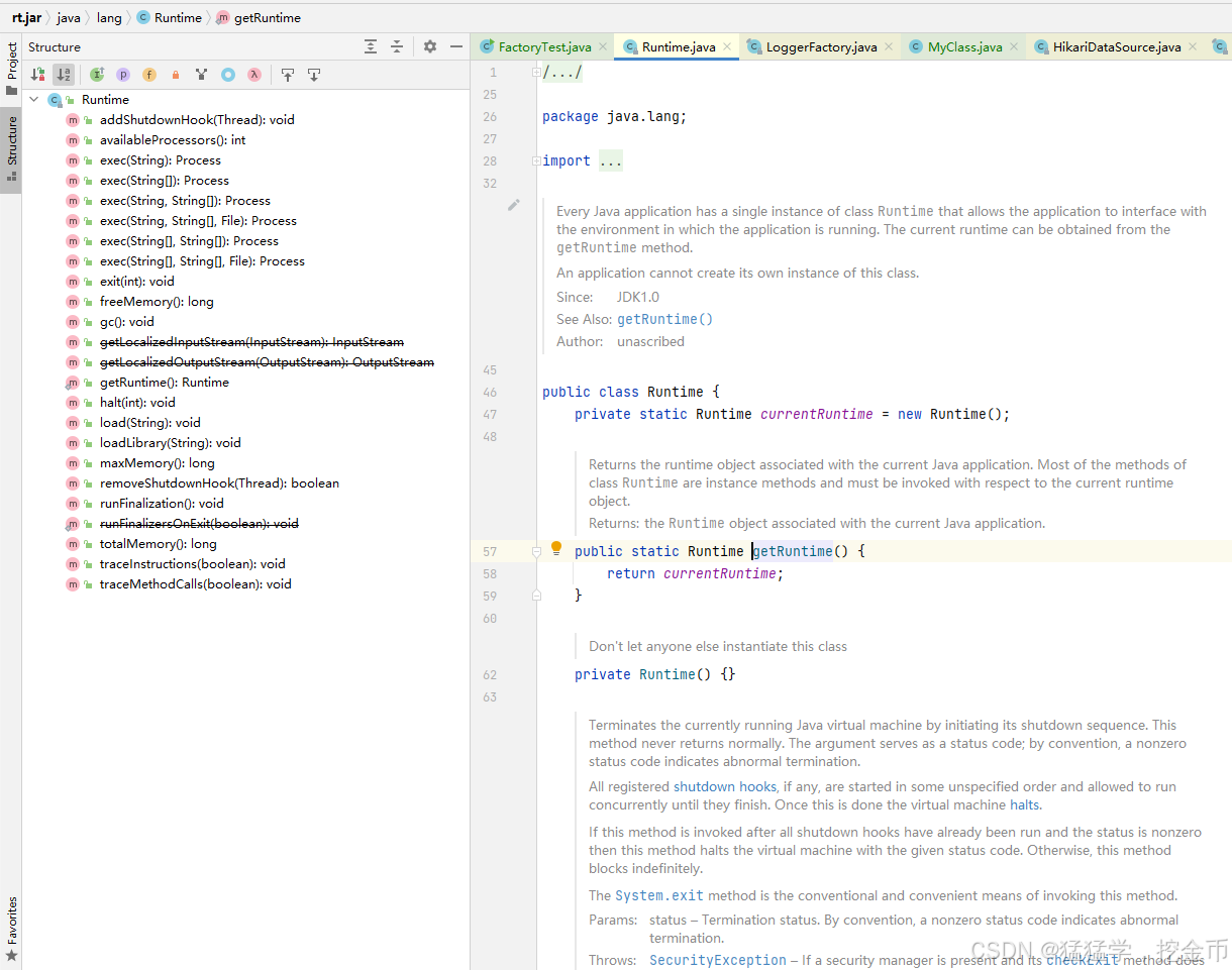 Runtime.getRuntime()就是通过工厂方法返回运行时的唯一实例。