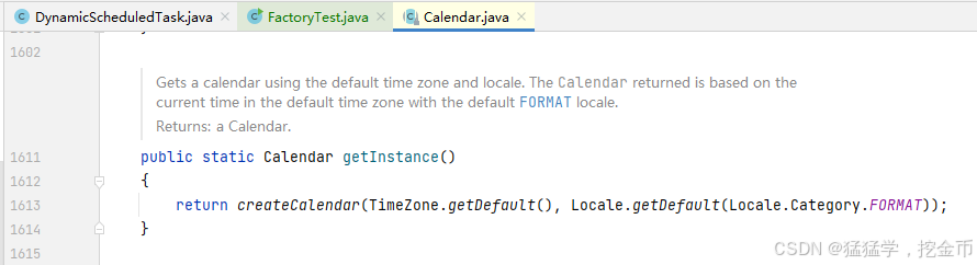 java.util.Calendar类:Calendar是一个抽象类,不能直接实例化。通过Calendar.getInstance()方法来获得具体的Calendar子类实例。根据不同的区域和时区,getInstance()方法会返回不同的具体实现(如GregorianCalendar)。