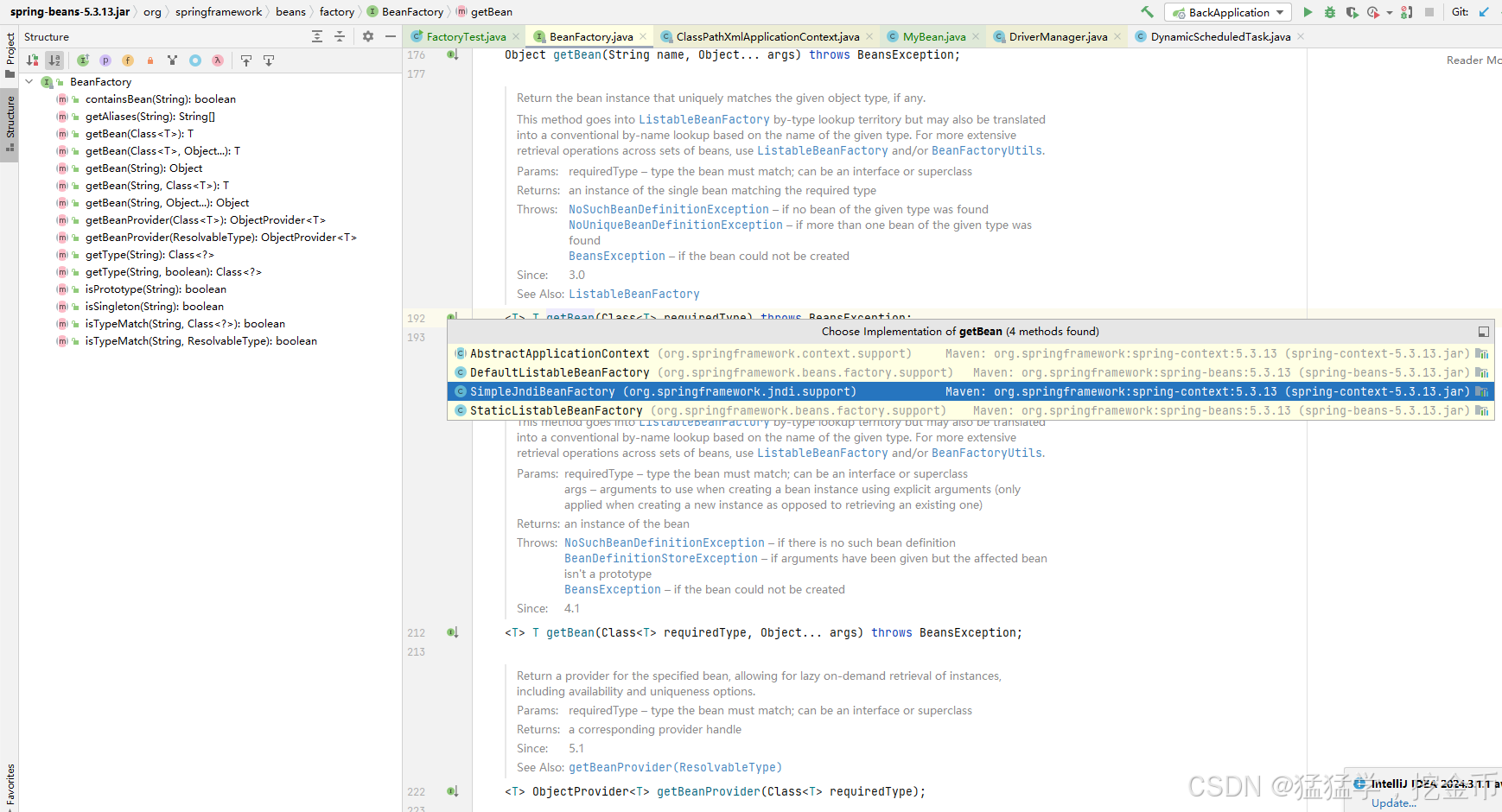 BeanFactory和ApplicationContext: Spring 中的BeanFactory和ApplicationContext提供了工厂方法来创建 Bean 实例,允许 Spring 容器在启动时根据配置文件或注解自动创建并管理对象。