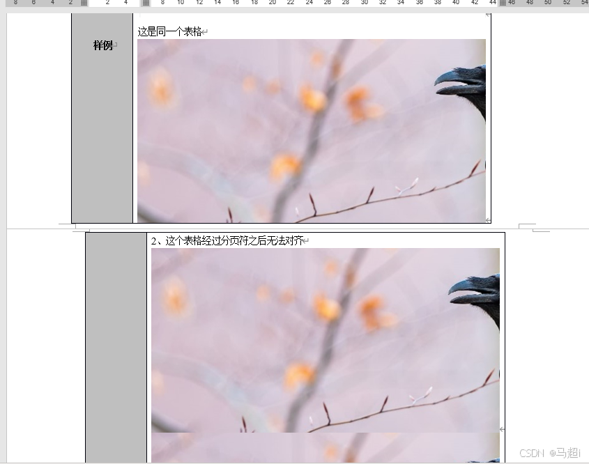 表格过了分页符之后不对齐
