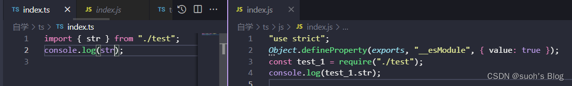 然后再indes.ts中引入这个模块,可以看到编译为js的时候是es6的模块化标准方法