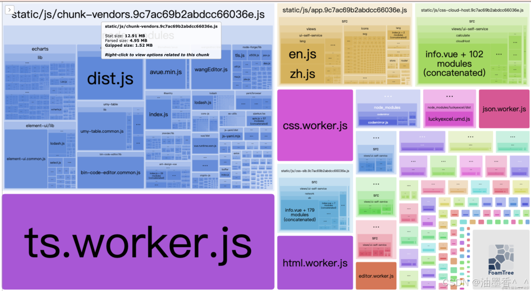 这样在打包的时候会生成一个静态网站查看各个模块占用的存储空间大小