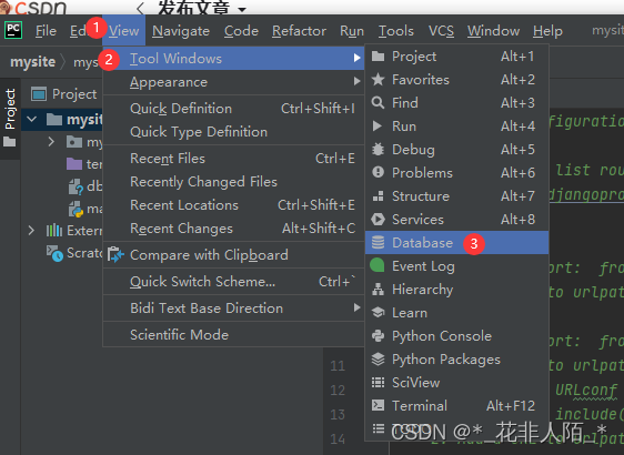 1. 打开Pycharm -- > View --> Tool Windows --> Database
