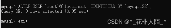 ALTER USER 'root'@'localhost' IDENTIFIED BY 'mysql123'; #修改密码为mysql123