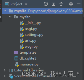 4. mysite/__init__.py:一个空文件,它告诉Python这个目录应该被看做一个Python包