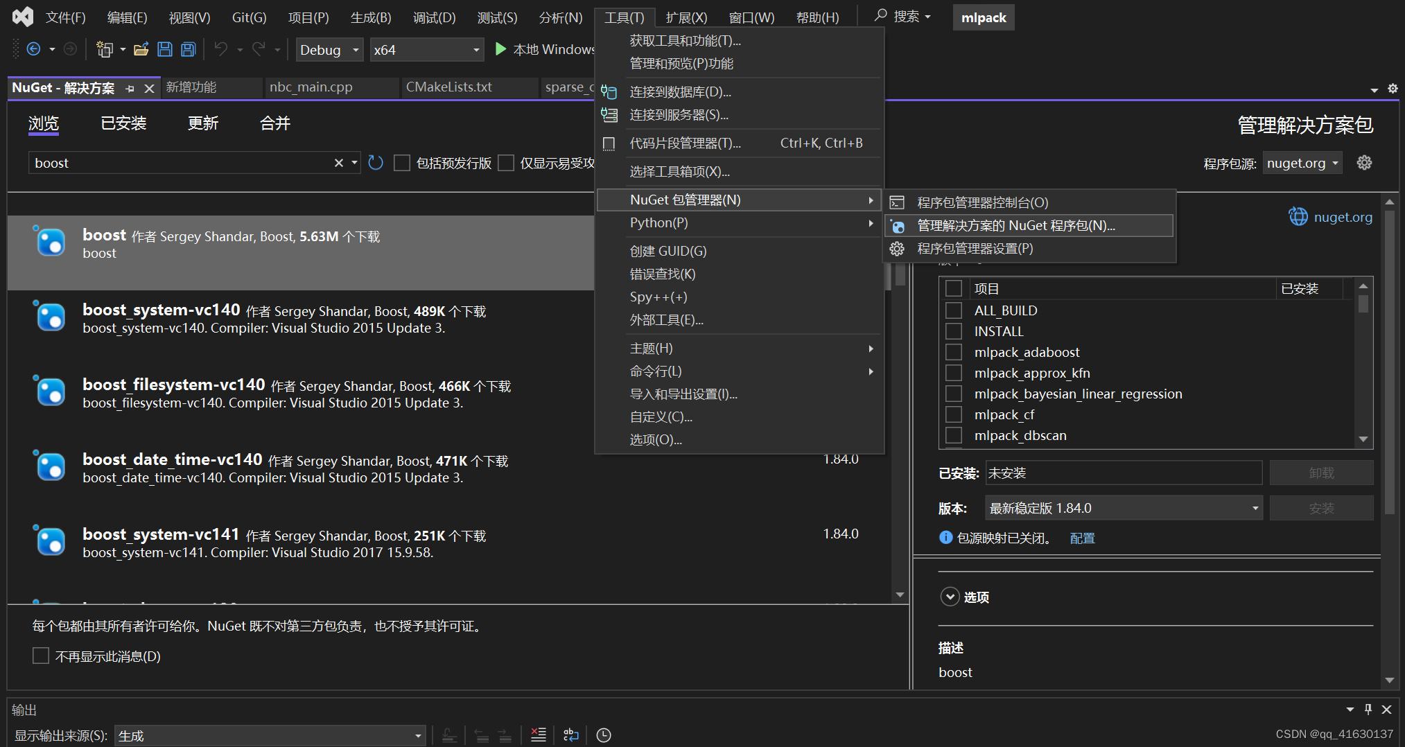 或 vs中工具->NuGet包管理搜索直接下载(下载完跳至步骤3)