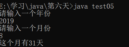 编写控制台Java程序,使用Scanner对象相关方法接收用户输入的年份和月份,