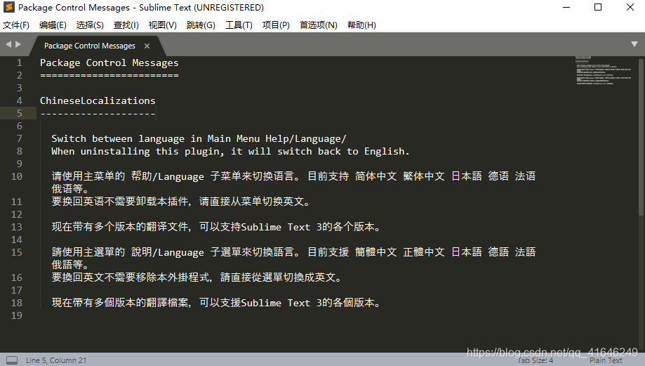不用补丁,sublime text 3 本身 设置中文方法