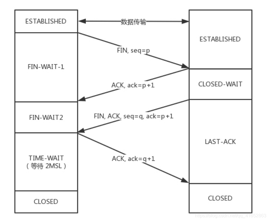 如果 B 没有跑路,发送了“B 也不玩了”的请求到达 A 时,A 发送“知道 B 也不玩了”的 ACK 后,从FIN_WAIT_2 状态结束,按说 A 可以跑路了,但是最后的这个 ACK 万一 B 收不到呢?则 B 会重新发一个“B 不玩了”,这个时候 A 已经跑路了的话,B 就再也收不到 ACK 了,因而 TCP 协议要求 A 最后等待一段时间 TIME_WAIT,这个时间要足够长,长到如果 B 没收到 ACK 的话,“B 说不玩了”会重发的,A 会重新发一个 ACK 并且足够时间到达 B。