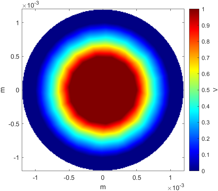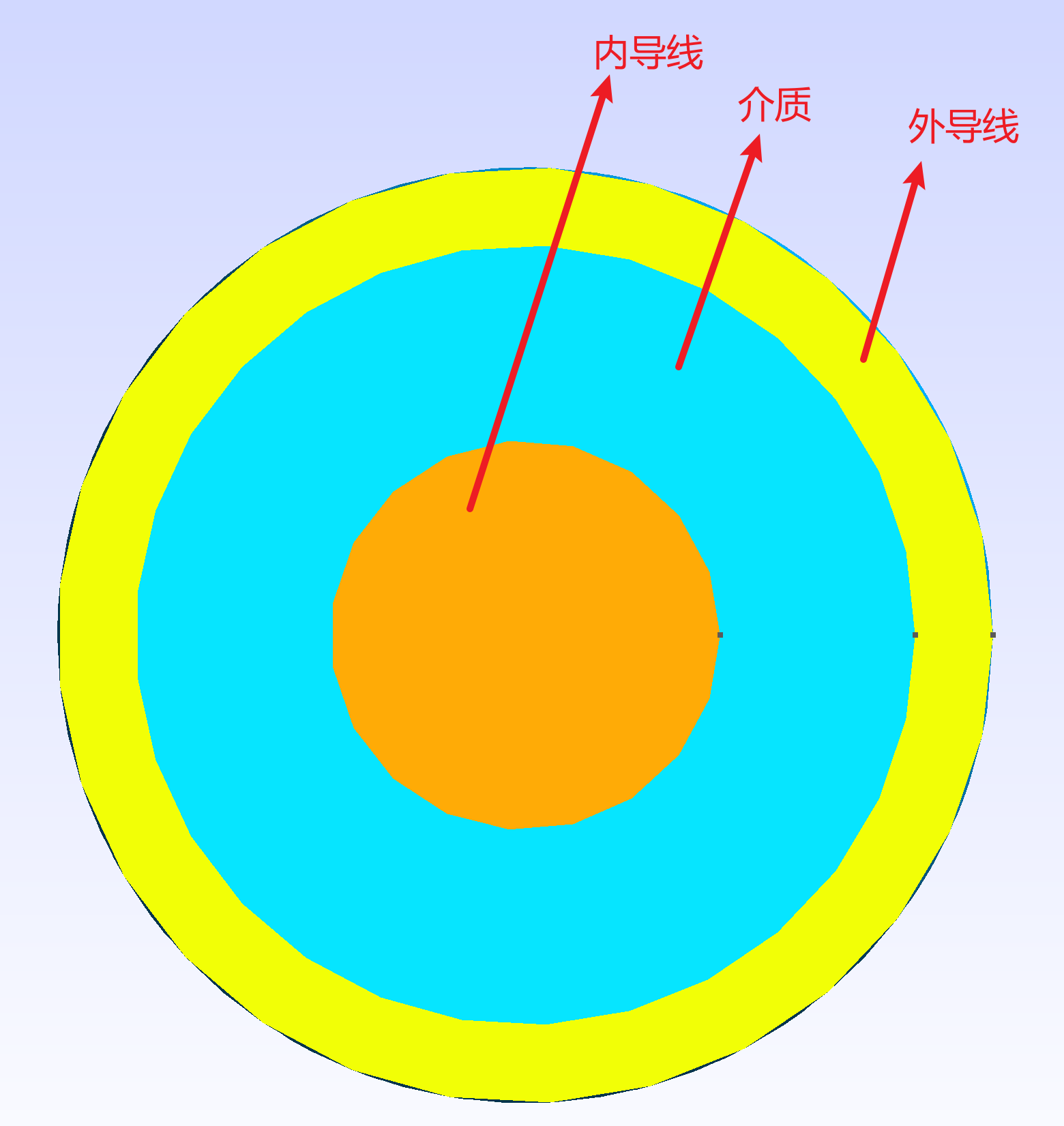 三维算例如下图所示,其中内导线电位为 1V,外导线电位为 0V,导线之间为一层介质。