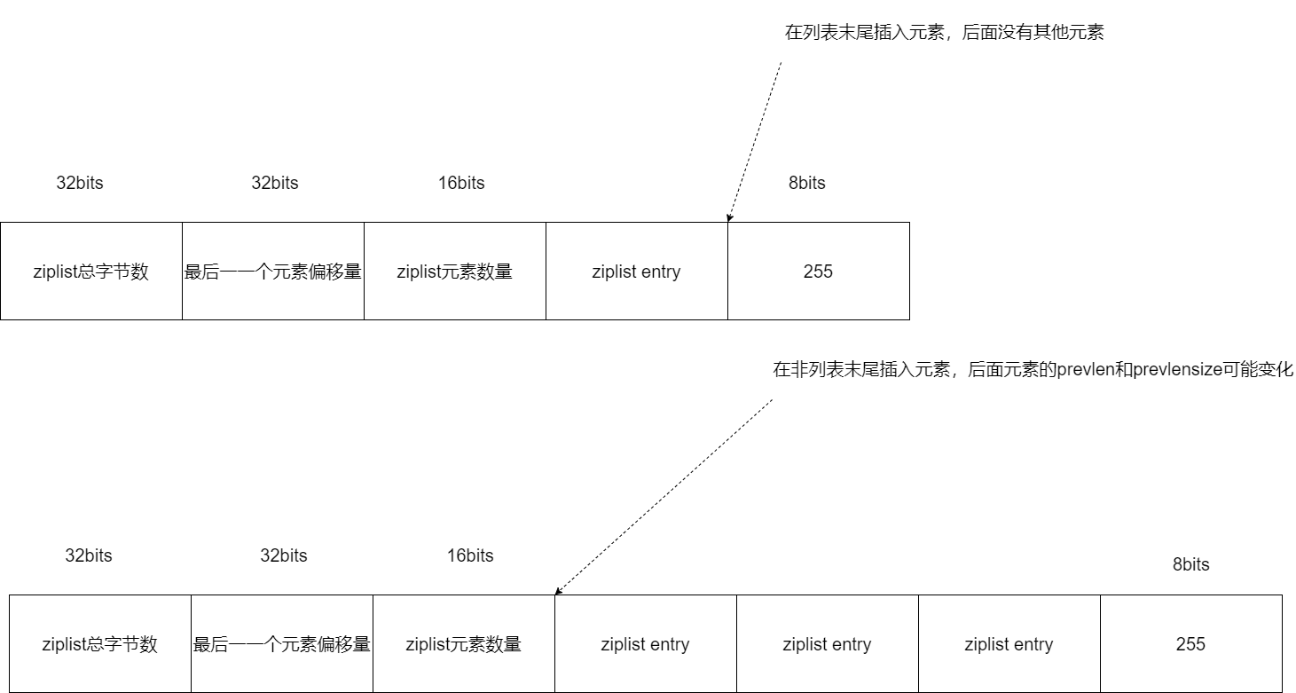 - 二是不能保存过大的元素,否则容易导致内存重新分配,甚至可能引发连锁更新的问题。所谓的连锁更新,简单来说,就是 ziplist 中的每一项都要被重新分配内存空间,造成 ziplist 的性能降低。