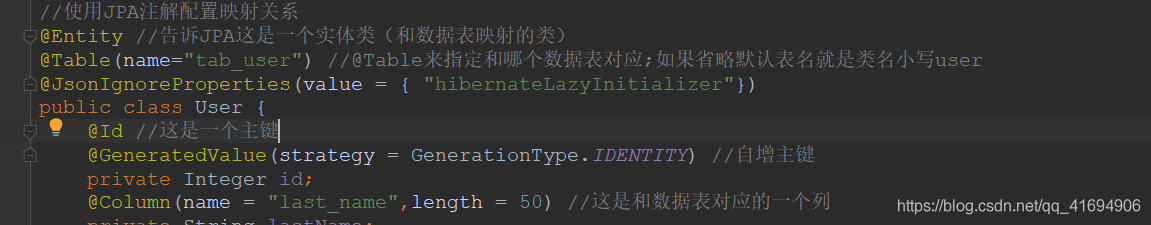 @Column(name = "last_name",length = 50) //这是和数据表对应的一个列