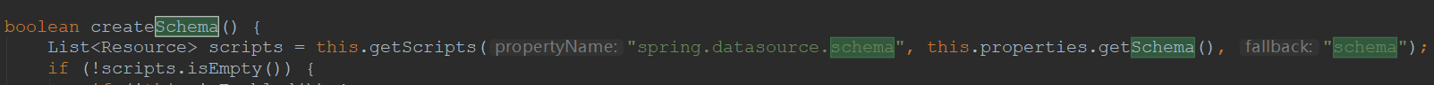 2:而建表语句的 文件名为:默认为:schema.sql,schema-all.sql;源代码设置在下面: