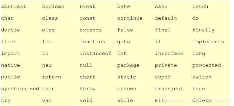 区分大小写,不能使用 JavaScript 的关键字作为变量。JavaScript 中的保留字(关键字):