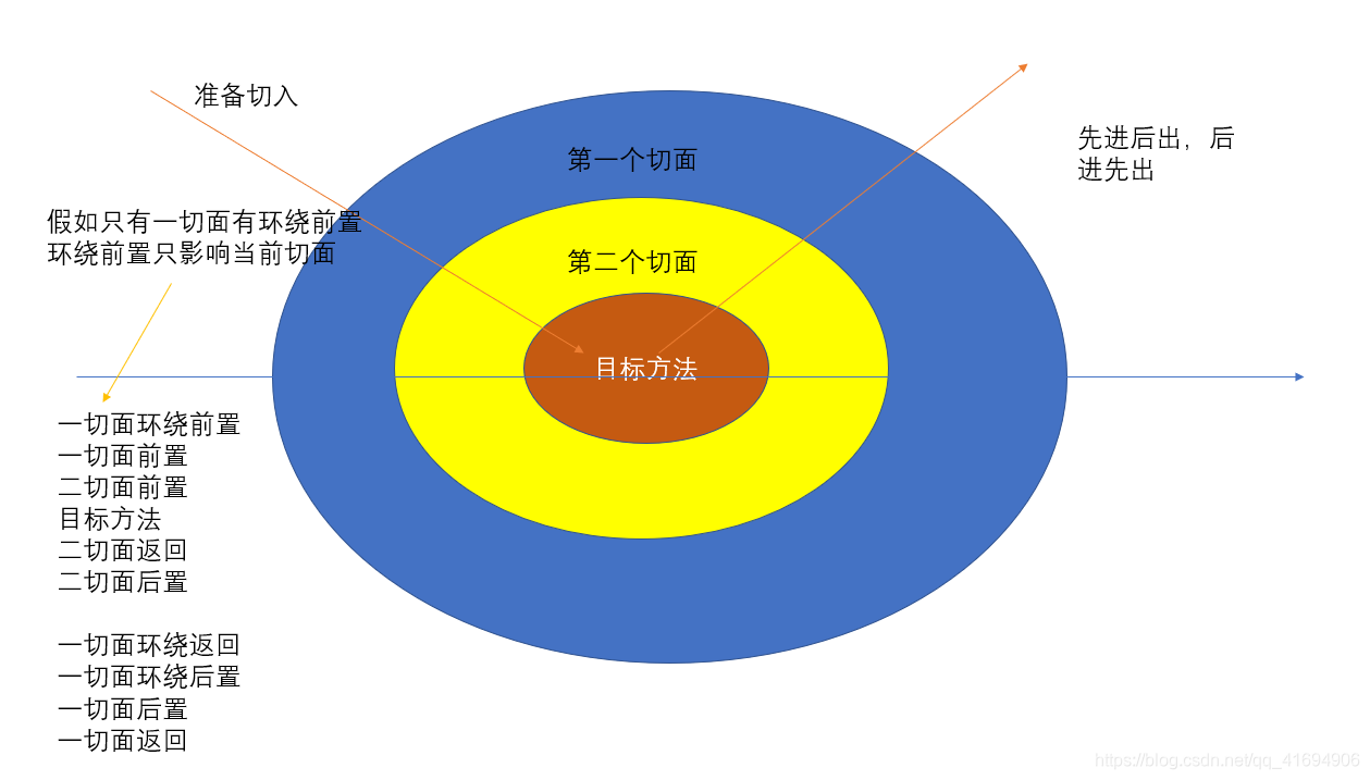 环绕前置---普通前置---目标方法执行---环绕正常/出现异常---环绕后置---普通后置---普通返回/出现异常