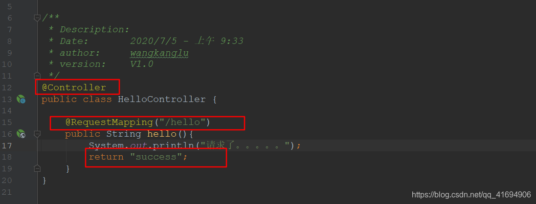 * 1)、客户端点击链接会发送 http://localhost:8080/hello 请求