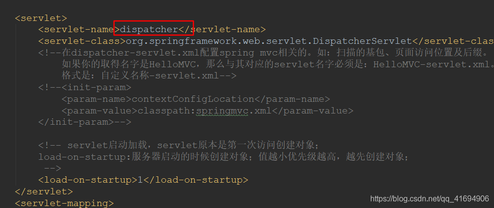 <servlet-name>dispatcher</servlet-name>