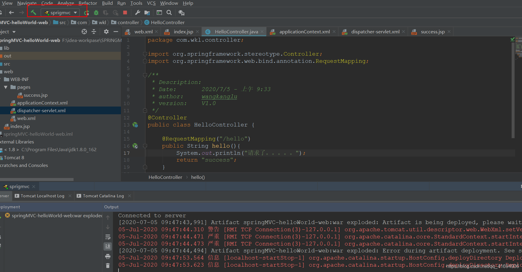 二:springMVC的HelloWorld