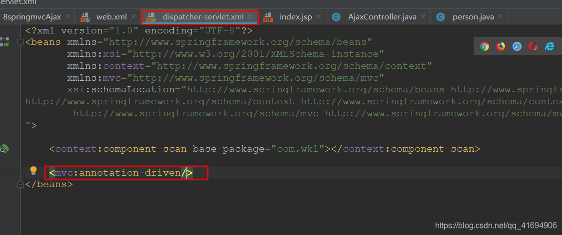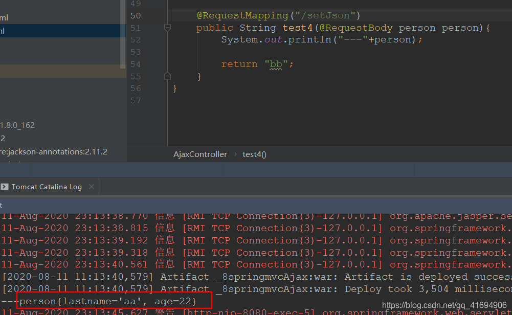 <!-- https://mvnrepository.com/artifact/com.fasterxml.jackson.core/jackson-databind --> <!--改jar包可以将返回的对象自动转为json--> <dependency> <groupId>com.fasterxml.jackson.core</groupId> <artifactId>jackson-databind</artifactId> <version>2.11.2</version> </dependency> <dependency> <groupId>com.alibaba</groupId> <artifactId>fastjson</artifactId> <version>1.2.32</version> </dependency>