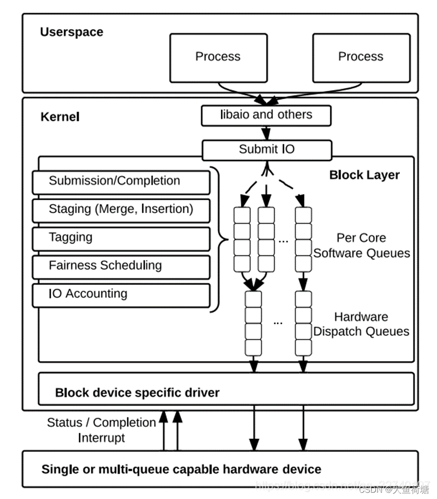 硬件队列(blk_mq_hw_ctx)和软件队列(blk_mq_ctx):