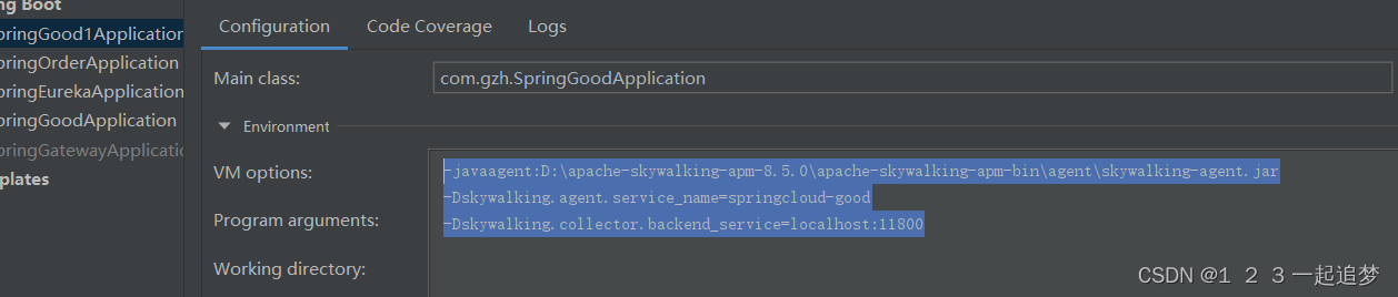 -Dskywalking.agent.service_name=springcloud-good#服务名