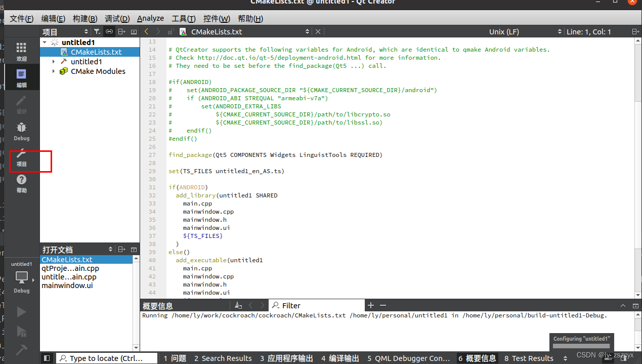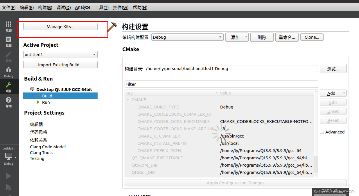 在Ubuntu系统中使用Qt时,遇到新建CMake项目构建过程中卡住的状况。问题出现在编译器配置上,黄色感叹号表示编译器未正确设置。解决方法是进入Kits管理,选择系统已安装的CMake工具,确保编译器配置无误。完成设置后,项目成功构建,运行和调试按钮即可正常使用。