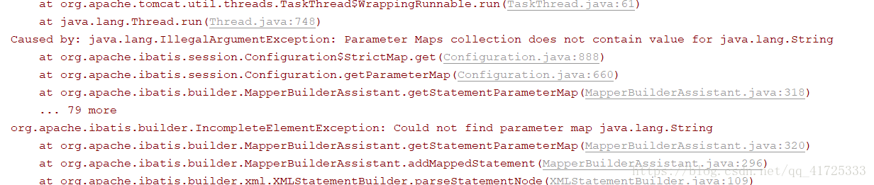 原因: java.lang.String类型不能用parameterMap修饰,改为parameterType即可,故修改后的正确语句为:
