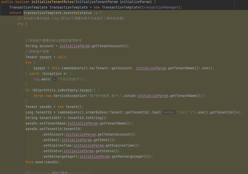 事务方法内部调用其他事务方法:如果在一个事务方法内部调用另一个事务方法,但是被调用的方法没有使用Required或RequiresNew事务传播级别,那么事务将会失效。所以在以后的项目中如果你要使用事务,那么请记住,一个服务一个事务,一次请求一个事务,千万不要想着用调用方法,然后再一个方法上面加事务。sping的事务是通过注解配置上去的,而下面的那个方法并没有接口,在实现类里面只是一个简单的方法而已,对于事务的注解来说没有任何作用,所以在这个方法里面调用回滚的方法自然就报错了。手动处理异常,把异常回滚。
