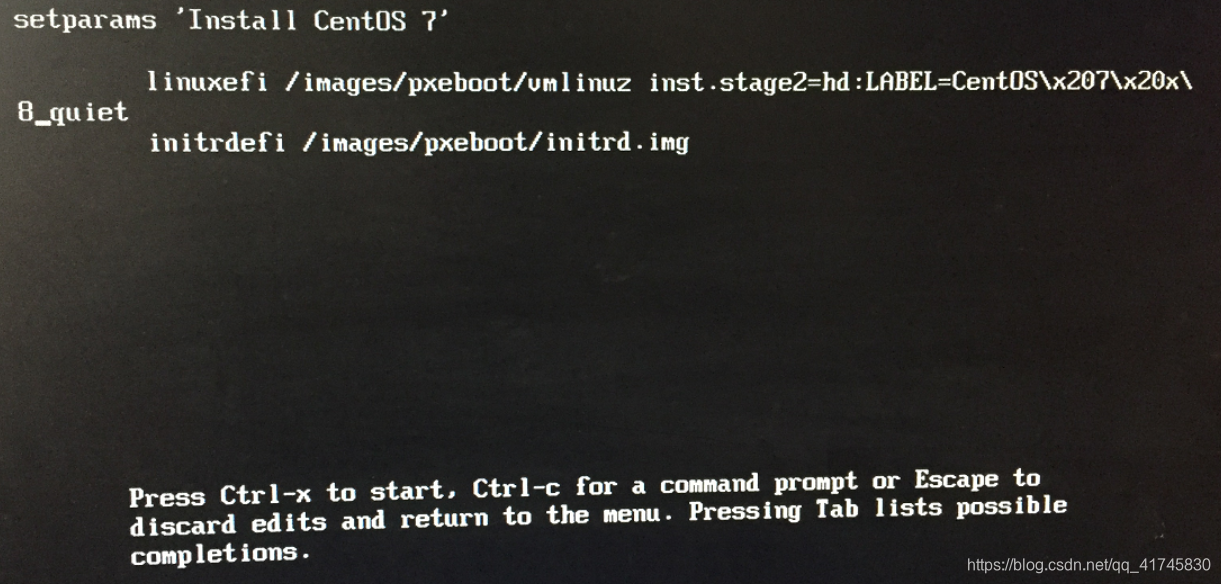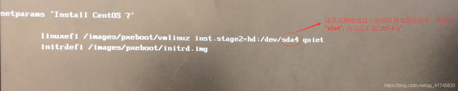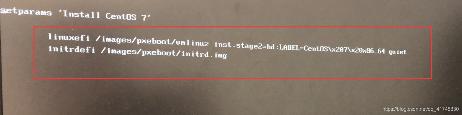 注意:此处的“LABEL=Centos\x207\x20x\86_64 quiet”指的是U盘的LABEL,
