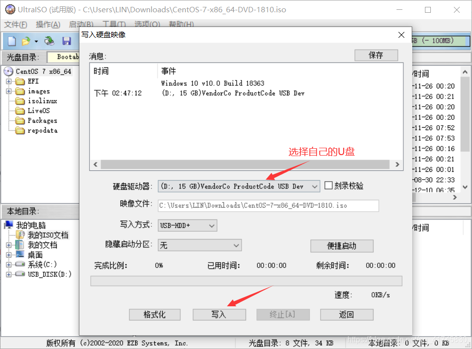 注意:Windows系统限制了LABEL的长度为11,多出的部分被截断了,所以导致U盘的LABEL只有“CentOS 7 x8”11位(实际为CentOS 7 x86_64)