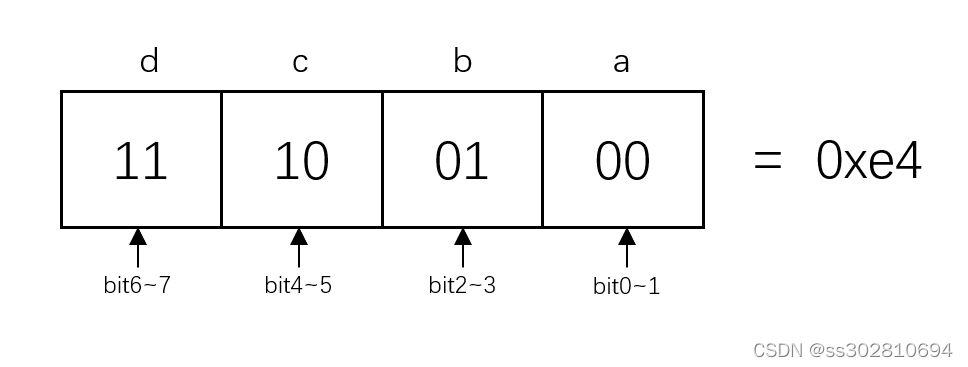 该程序输出的结果为1,代表我们4个变量只占用了一个字节。在位域中,我们也可以使用一些方式来实现对字段位置的灵活控制: