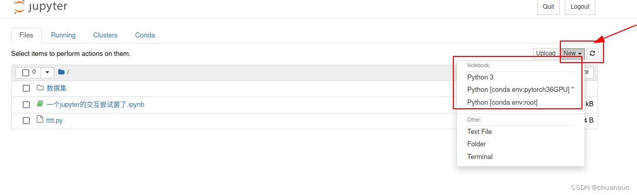 然后可以点击new新建一个jupyter notebook运行脚本,也可以干点别的。