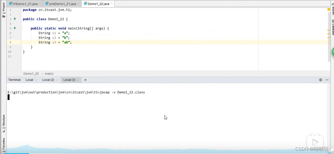 后面我就创建了一个新的空项目尝试了一下 然后我发现原来交给maven管理的项目或模块才会直接保存在target中,但如果是创建的没有交给maven管理的模块就会出现out包 也能输入命令。但是我却找不到我的out包 网上也百度了一下按照方法也没有弄好 一开始我以为是我的jdk版本出现了问题 因为在编译过程中有看到我的(下图)这个版本好像不太对 设置了半天也没发现哪有问题。今天在学习黑马jvm的课程中我发现我和老师的idea不太一样 他可以编译后进入out文件中执行javap -v命令。