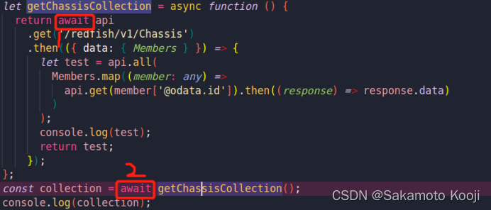 一个典型的Promise笔记详解 Async如果返回的不是一个Promise对象则会自动被一个promise包裹,但是如果返回的是promise对象则不再二次包裹,这是一个特性。api.all是一个promise,包裹在async的promise可以直接通过await拿到里面的值。2号await则解开通过上诉方法返回的async函数中的api.all()这个promise。1号await负责从api中拿数据,返回api.all。