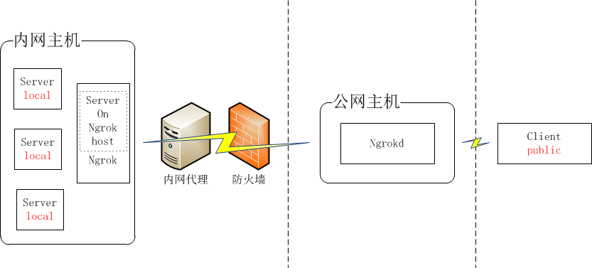 ngrok分为client端(ngrok)和服务端(ngrokd),