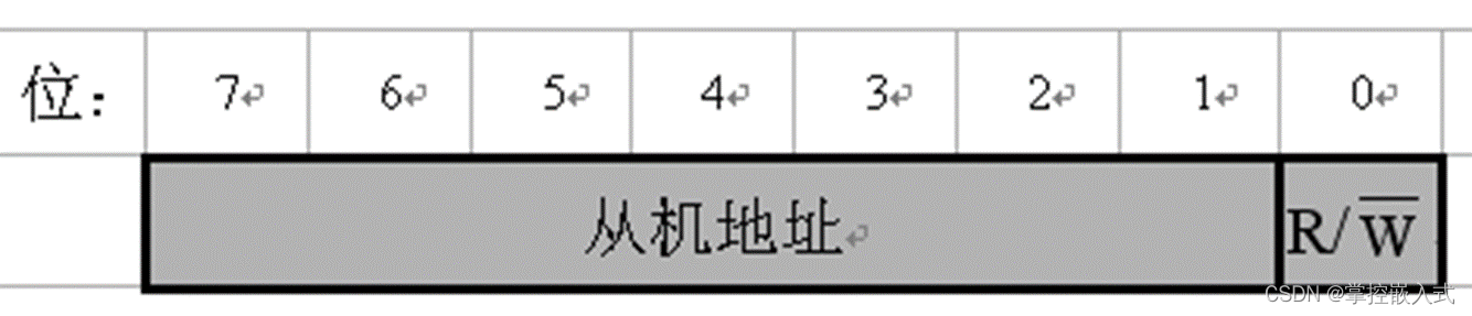 - 主机在发送了起始信号后再发送一个字节数据指明从机地址和后续字节的传递方向(确定从机的地址,只占了一个字节的7位(高七位),最后的一位确定剩余发送方向(最后一位如果是0就是主机给从机发,最后一位是1就是从机给主机发)
