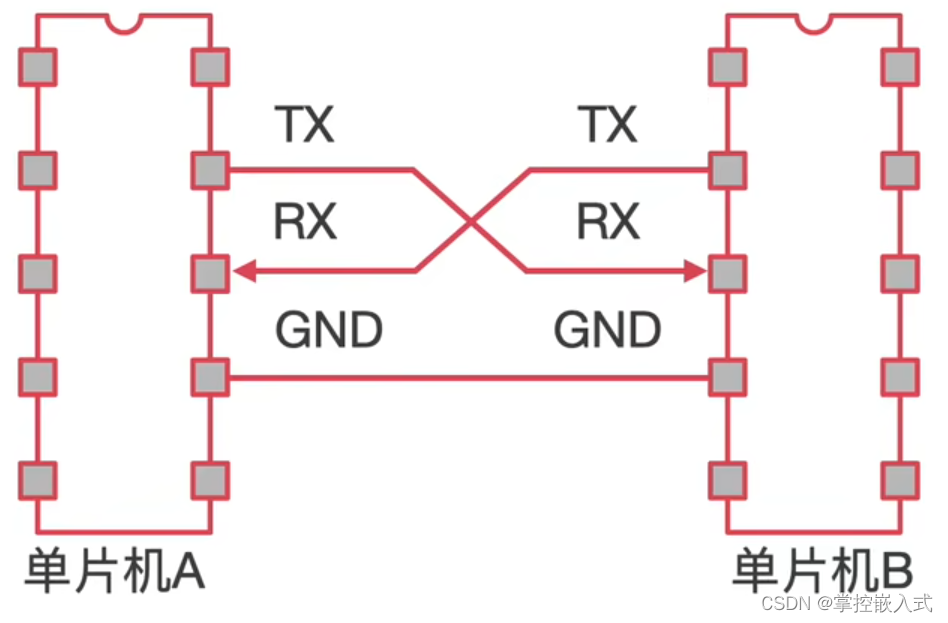 是一种简单的串行通信协议,通常用于连接计算机、微控制器和外围设备。采用两条线(发送:TX和接收:RX,还需要参考:GND)进行半双工通信。将所需传输的数据一位接一位地传输,在UART通讯协议中信号线上的状态位高电平代表’1’,低电平代表’0’。数据以异步方式传输,通过起始位、数据位、停止位和可选的校验位来定义数据帧。通信速度可根据需求进行配置。 抗干扰能力差