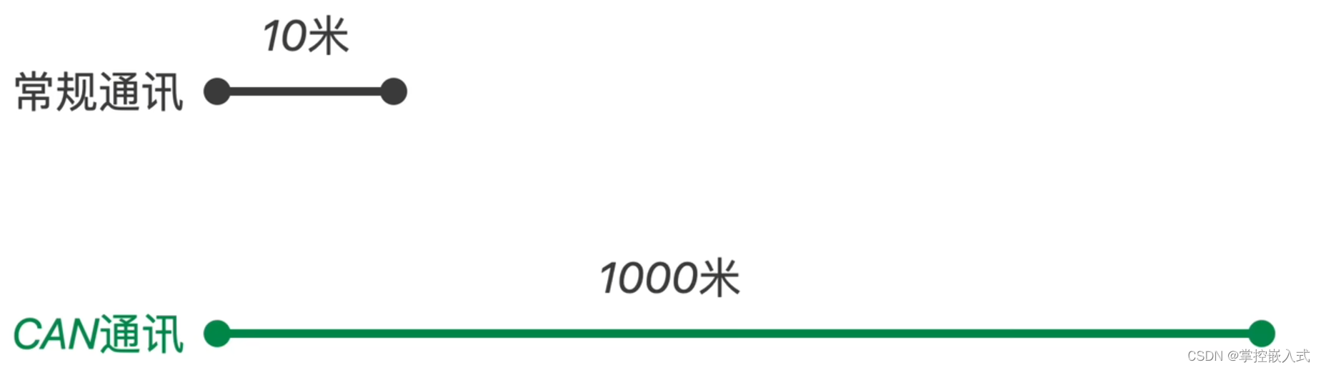 CAN总线传输距离很长,可达1千米,如传输速度最高到1Mbps, 通信距离最远到10km,无损位仲裁机制,多主结构。连接在CAN总线上的设备叫做节点设备(CAN Node),CAN网络的拓扑一般为线型。线束最常用的是双绞线,线上传输为对称的差分电平信号。
