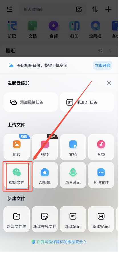 利用手机上传:首先下载百度网盘