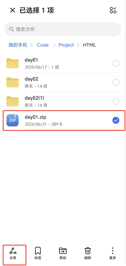 按住这个压缩包,然后点击分享