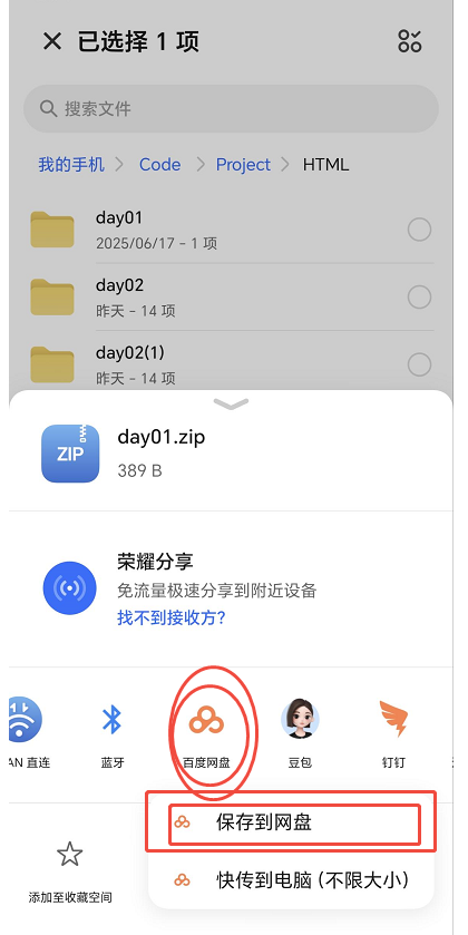 选择你的作业文件上传到网盘--------》直接跳过标题二,进行第三步