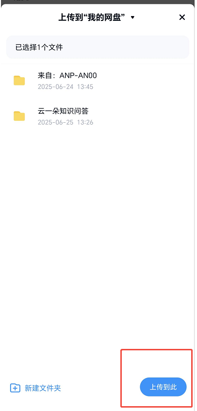 选择网盘保存的位置,点击下面的上传到此