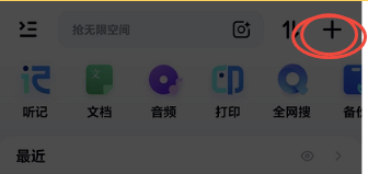 打开百度网盘,点击右上角的加号