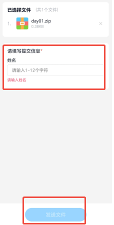 最后一步:输入姓名(必须),点击发送文件