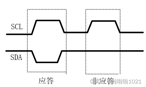 结束条件:当SCL为高电平时,SDA由低到高的跳变为结束信号。