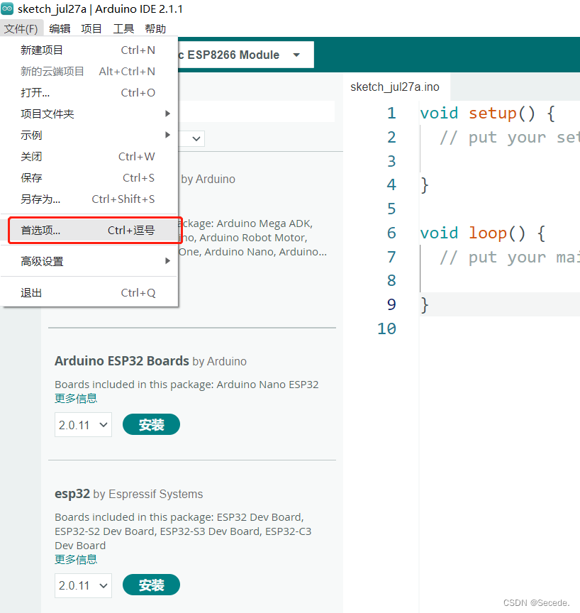 Arduino IDE 2.1.1 ESP8266开发板安装 百度云:https://pan.baidu.com/s/1XfNF8gHFmnVpWTbxBgUwkg 提取码:a1ql。国内网络情况不行,需要安装ESP8266开发板模组,记录一下处理流程和相关支撑文件。Tips: 关于CH340/CP2102 驱动程序,可以在安信可官网下载。ESP8266 3.1.0 所需文件已打包。选择3.1.0版本 点击安装即可。.填写“其他开发板管理器地址”