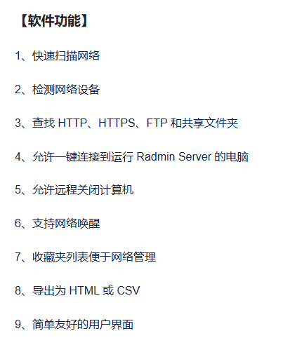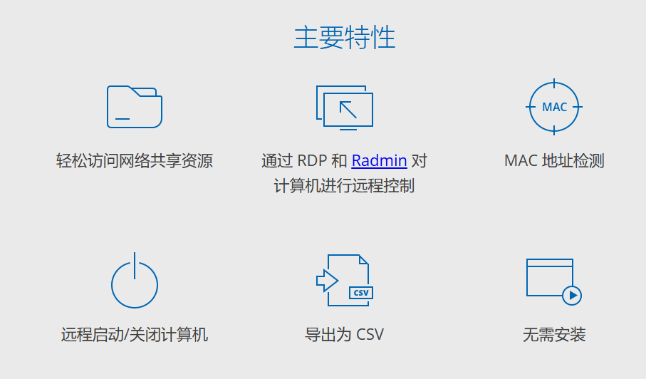 可靠且免费的网络扫描器可以分析 LAN(局域网)。该程序可扫描所有网络设备,使您能够访问共享文件夹和 FTP(文件传输协议,在计算机网络中传输大文件的标准协议) 服务器,(通过 RDP 和 Radmin)远程控制计算机,甚至还能够远程关闭计算机。