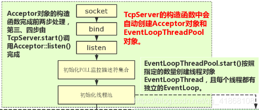首先在TcpServer对象构建时,TcpServer的属性acceptor同时也被建立。