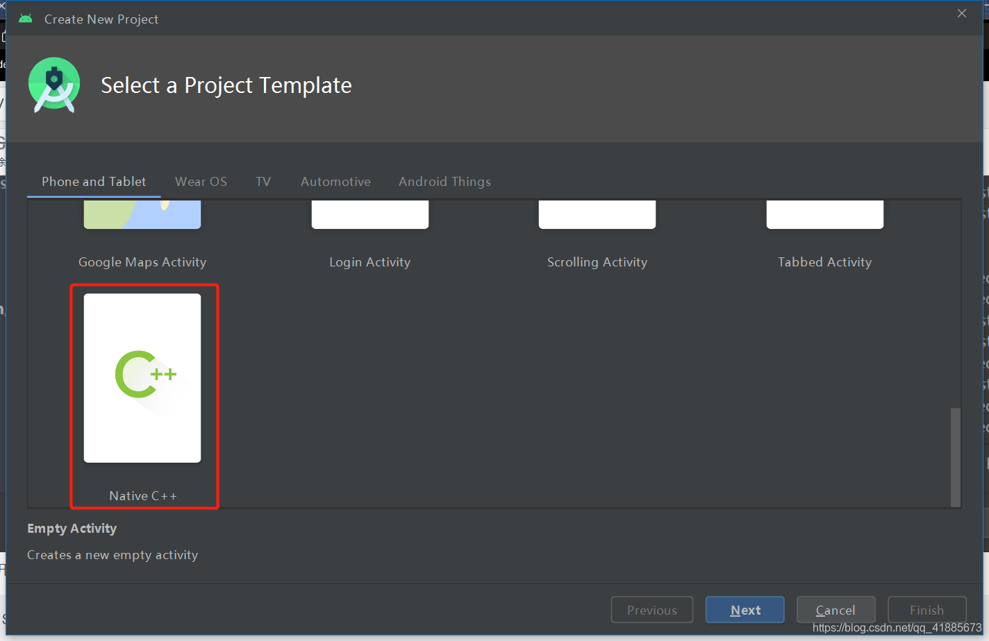 Create New Projec,开始选择模板,这时选择最后一项Native C++,然后进入配置界面。