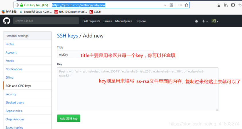第二步:登录你的github,然后访问:https://github.com/settings/ssh/new